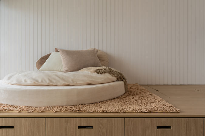 Professionally taken photos of a 5-room HDB in Ang Mo Kio. This flat embodies the serene simplicity of Muji style aesthetics, offering a peaceful retreat for both relaxation and entertaining. The wide and spacious living area serves as the perfect venue for hosting gatherings with friend and family, providing ample room for laughter and conversation to flow freely. The cleverly designed platform storage ensures maximum utilization of space, keeping the environment clutter-free and effortlessly organized. With its minimalist charm and thoughtful functionality, this flat embraces a lifestyle of tranquility and balance.